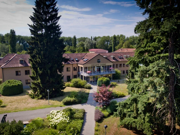 Die Unterbringung erfolgt im Hauptkurhotel oder in den 80 m entfernten Villen Vlasta und Šárka. Eine Kolonnade mit Café und Geschäften, Sonnenterrassen, ein Kinderspielplatz und ein multifunktionaler Sportplatz vervollständigen den Komplex. Das Hotel verfügt über einen Fahrradverleih und einen Abstellraum für Fahrräder und Sportgeräte.