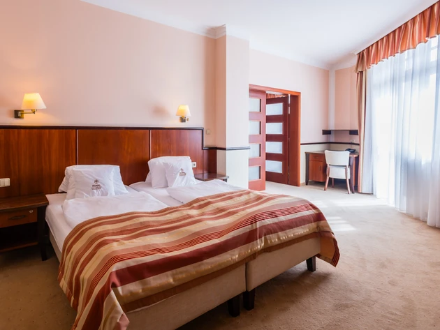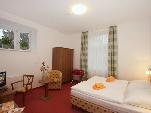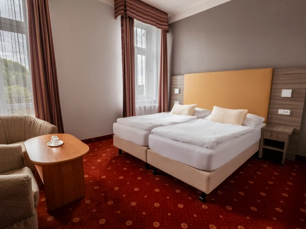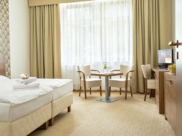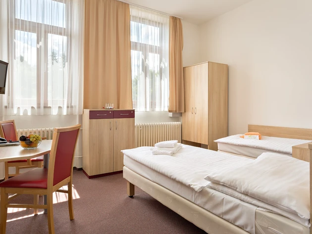 - Zdravotní pojišťovna hradí ubytování ve dvoulůžkových pokojích kategorie standard. Nadstandardní ubytování a ubytování v jednolůžkovém pokoji je možné za doplatek ve vybraném lázeňském hotelu.