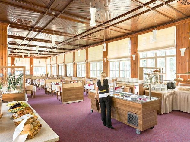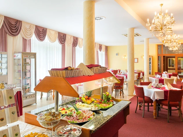 - Zdravotní pojišťovna hradí základní stravování formou plné penze (snídaně kontinentální, obědy a večeře výběrem z několika jídel). Možnost výběrové stravy (snídaně formou rautu, obědy a večeře výběrem z menu, ovocné a zeleninové saláty) za příplatek dle vybraného lázeňského hotelu.