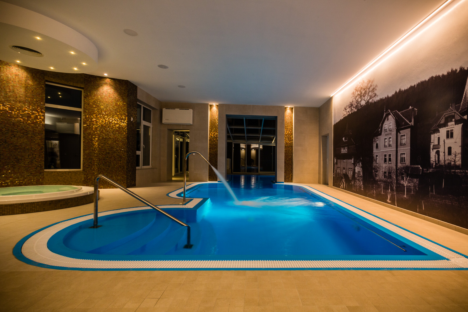 Hosté mají neomezený vstup do vodního relax centra, kde si mohou dopřát regeneraci a příjemný odpočinek, a mohou volně využívat bazén, Whirlpool, saunu a parní lázeň s odpočinkovou terasou. Župan, ručníky, fén a hotelovou kosmetiku naleznete v pokoji a jsou během pobytu k dispozici zdarma.
